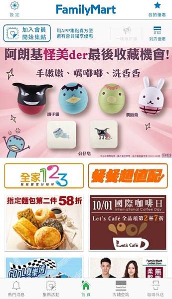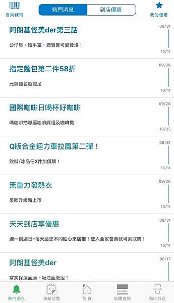 打開APP後的主畫面基本上都是全家的最新消息, 可以馬上知道近期有什麼優惠活動