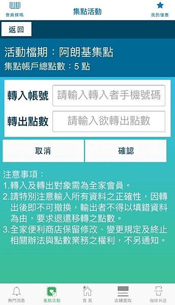 點數移轉:可以將點數轉給他人, 需同樣為全家會員, 大概就是不用面交給需要貼紙的人這樣方便