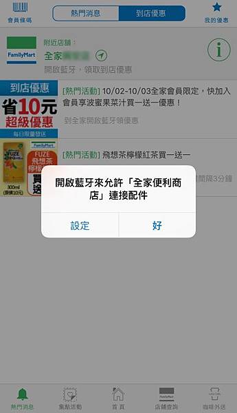 連結最近很紅的Beacon, 打開藍芽即可領取在附近的全家優惠商品活動