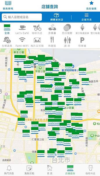 可以看到在附近的全家分布圖, 或者要看某個特定區域的全家店舖地址