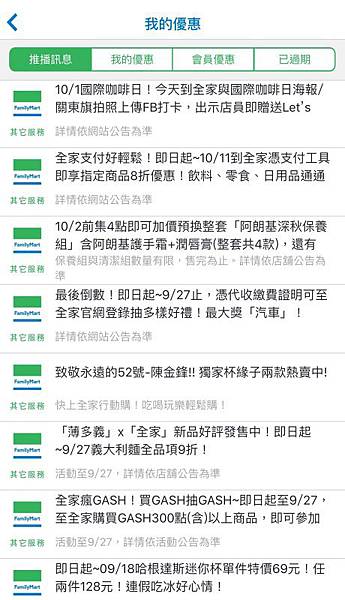 與熱門消息不同的是, 推播訊息欄裡面有全家的所有最新活動